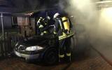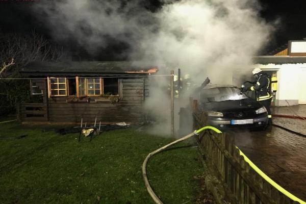 Am Salzgraben: dort brannte ein auf einem Hof abgestellter PKW. Das Feuer griff auf eine benachbarte Garage und eine Gartenhütte über.