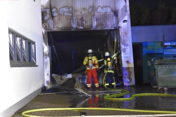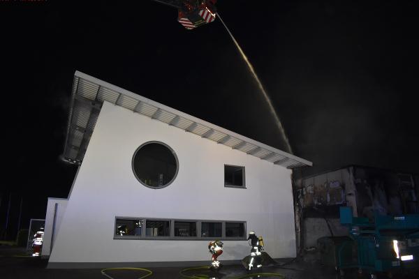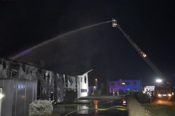 Bei dem Eintreffen der ersten Feuerwehrkräfte war bereits eine starke Brandinten-sität in einem der insgesamt 5 zusammenhängenden Gebäudeteile des Betriebes festzustellen. Die Feuerwehr setzte umgehend 2 Drehleitern und mehrere Strahlrohre im Innen- und Außenangriff ein, um eine Ausbreitungs des Feuers auf weitere Gebäudeab-schnitte zu verhindern und den Brand zu bekämpfen. Das Schadenfeuer blieb auf das Gebäudeteil, in dem der Brand ausgebrochen war, beschränkt. Eine weitere Ausbreitung konnte erfolgreich verhindert werden. Der direkt betroffene Gebäudeteil stürzte teilweise ein; an den anliegenden Gebäudeabschnitten, die durch Brandschutztüren und -wände gesichert wa-ren,entstand im Verhältnis hierzu nur ein geringer Schaden.