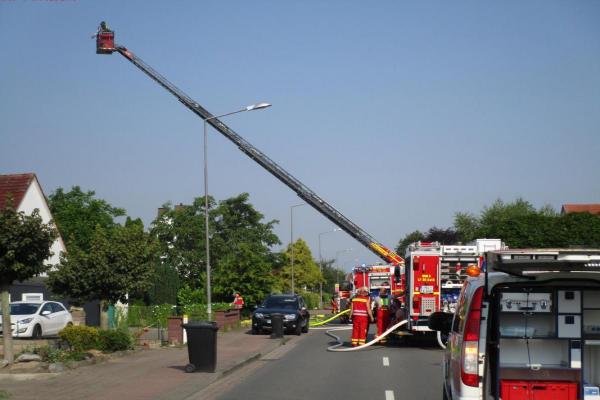 Das Feuer konnte schnell gelöscht werden, allerdings schlossen sich umfangreiche Nachlöscharbeiten an. So mussten auf der betroffenen Seite des Hauses die gesamten Dachziegel abgenommen werden und im Haus mussten im Obergeschoss Wände geöffnet werden, um an Brandnester zu gelangen und diese abzulöschen.