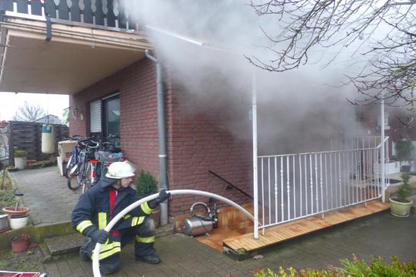 Beim Eintreffen der ersten Einsatzkräfte der Löschgruppe Hahlen war bereits eine starke Rauchentwicklung aus dem Kellerbreich zu erkennen. Ein Trupp unter Atemschutz ging umgehend mit einem C-Strahlrohr in den betroffenen Kellerbreich vor und konnte das Feuer in kurzer Zeit unter Kontrolle bringen. Wärend der Löscharbeiten wurde eine Gasflasche aus dem Keller gebracht. Zeitgleich kontrollierte ein weiterer Trupp unter Atemschutz die oberen Geschosse. Da das Feuer bereits die Deckenvertäfelung mit in Brand gesetzt hatte, wurden die Räume nach dem löschen mit Zurhilfenahme einer Wärmebildkamera untersucht. Anschließend wurden der Keller und die Wohnräume durch einen Drucklüfter von dem Brandrauch befreit.