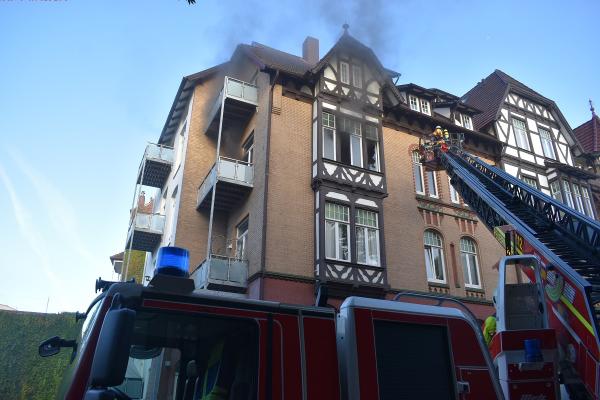 Beim Eintreffen der ersten Einsatzkräfte war eine starke Verrauchung im zweiten Obergeschoss zu erkennen.