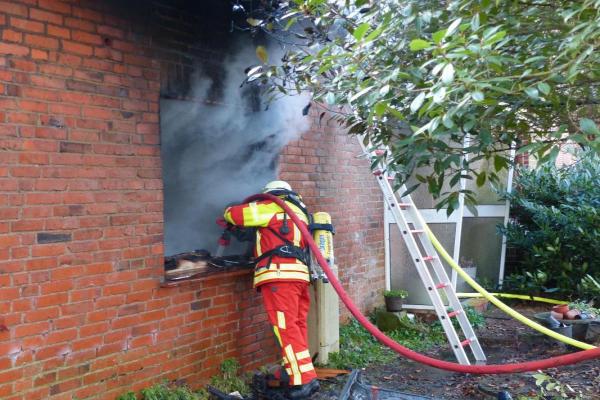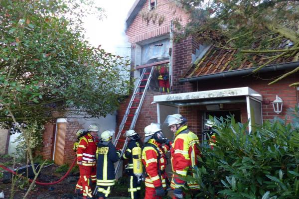Beim Eintreffen der ersten Einsatzkräfte stand ein Raum in einem Anbau eines leerstehenden Wohnhauses in Vollbrand. In der Folge kam es zu einer starken Rauchentwicklung aus dem gesamten hinteren Bereich des Wohnhauses. Da nicht klar war, ob sich noch Personen im Gebäude befanden, gingen drei Trupps unter Atemschutz zur Menschenrettung vor. Parallel dazu wurde mit drei C-Rohren die Brandbekämpfung von innen und außen vorgenommen. Das darüberliegende Dachgeschoss wurde kontrolliert und auch hier Brandnester abgelöscht. Personen wurden nicht gefunden. Umfangreiche Nachlösch- und Belüftungsarbeiten schlossen sich an. Der Einsatz konnte nach circa zwei Stunden beendet werden. Insgesamt waren circa 45 Feuerwehrkräfte im Einsatz.