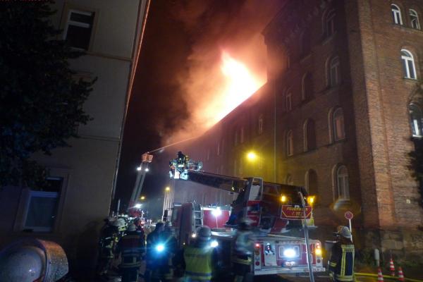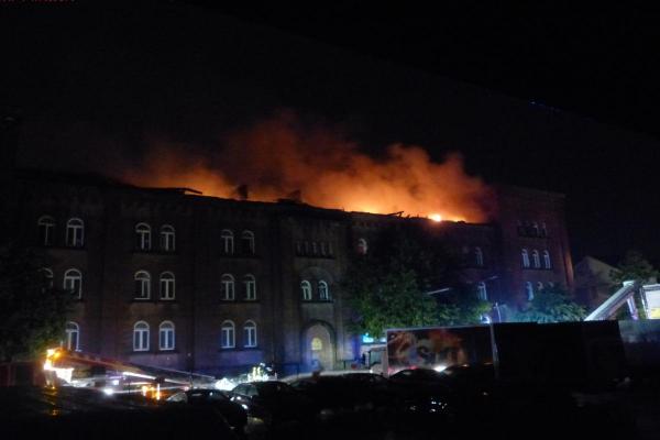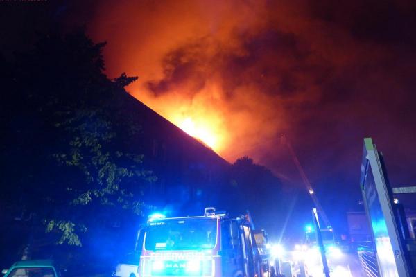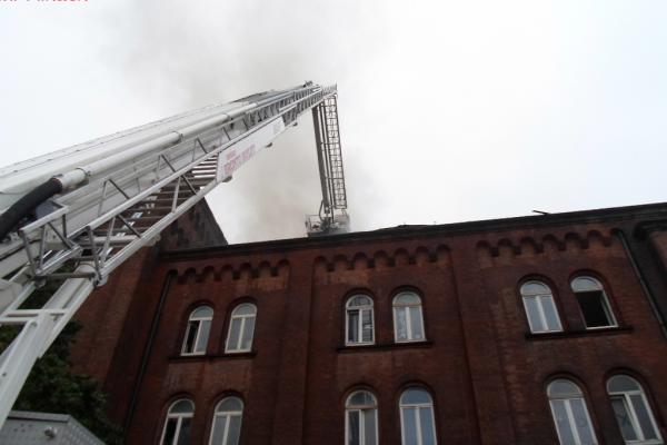 Vollbrand von ca. 2.400 m2 Dachfläche mit teilweisen Durchbrand in die darunter liegenden Geschosse