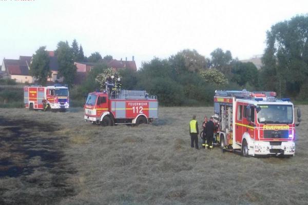 Beim Eintreffen der ersten Einsatzkräfte standen auf einer Fläche von ca. 1000 qm gemähtes und gewendetes Heu in Flammen.