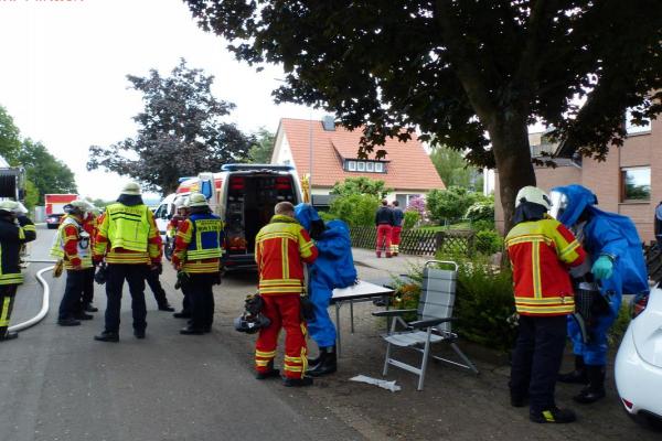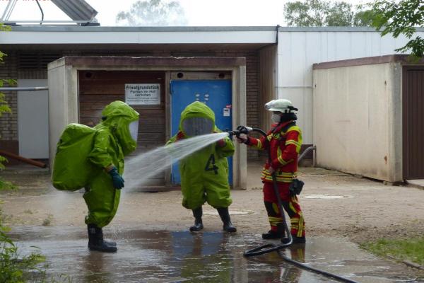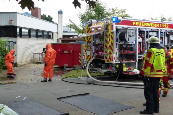 Im Einsatz waren circa 70 Feuerwehrkräfte und drei Trupps unter Chemikalienschutzanzügen.