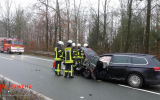 Verkehrsunfall zwischen zwei PKW. Eine Person wurde lebensgefährlich, eine schwer und eine leicht verletzt.