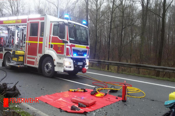 Die B 65 wurde für die Zeit der Rettungsmaßnahmen komplett gesperrt.