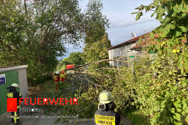 Zwei große Äste eines Baumes lagen quer zur Fahrbahn und auf der Terrasse eines Restaurant. Die Äste wurden zersägt und beiseite geräumt.