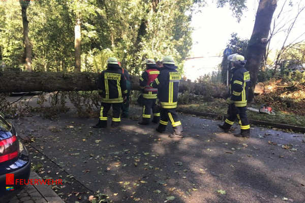 Aufgrund des beschädigten Stromverteilerkasten wurde die Einsatzstelle durch die Kräfte der Feuerwehr Minden, Löschgruppe Bölhorst entsprechend Abgesichert und der Energieversorger wurde zur Einsatzstelle nachgefordert. Eine weitere Gefahr bestand darin, das der Baum sich beim zersägen auf die Seite rollt und ein weiteres parkendes Auto beschädigt werden könnte. Daher entschlossen man sich dazu, mit Unterstützung der Polizei den Halter des PKW ausfindig zu machen. Zur zusätzlichen Sicherung des Baums wurden Mitarbeiter der städtischen Betriebe Minden zum Einsatzort nachgefordert, die mit Ihren Gerätschaften den Baum sicherten. Anschließend wurde der Baum durch die Mitarbeiter der städtischen Betriebe zersägt und entsorgt.