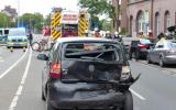 Aus unbekannter Ursache prallte im Kreuzungsbereich Kaiserstraße/Hausberger Straße ein PKW-SUV auf einen vorausfahrenden Kleinwagen. Durch den Aufprall verlor der Fahrer des SUV die Kontrolle über sein Fahrzeug, schleuderte nach