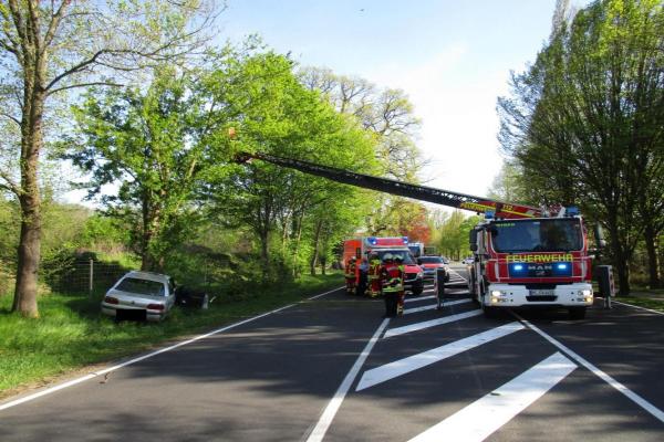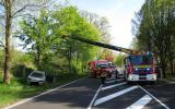 Die vor Ort eingetroffene Feuerwehr musste lediglich mit Hilfe der Drehleiter einige durch den Aufprall abgeknickte Äste aus dem Straßenbaum entfernen.