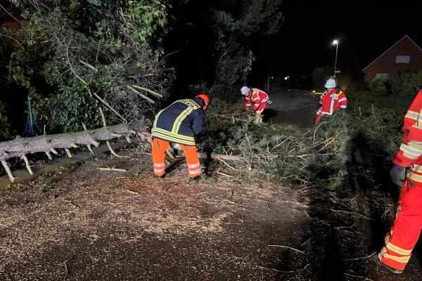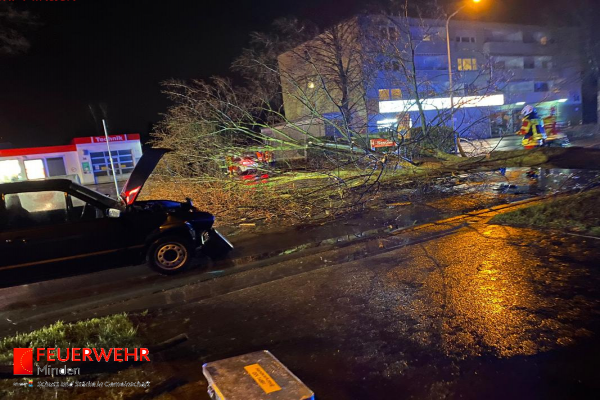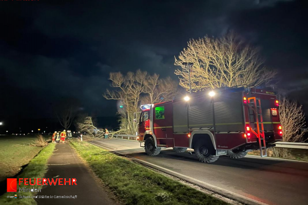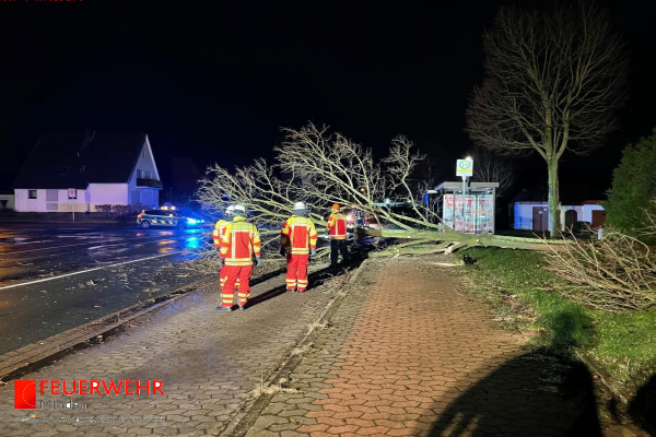In der Nacht vom 16.02. auf den 17.02.2022 verzeichnete die Feuerwehr Minden 31 sturmbedingte Einsätze durch umgestürzte Bäume, herabgefallene Äste oder blockierte Straßen. Auch wurden Gefahrenstellen durch herabfallende Dachziegel sowie lose Fenster gesichert. In den frühen Morgenstunden waren bis zu 50 Feuerwehrkräfte gleichzeitig im Einsatz. Bei allen Einsätzen kamen keine Personen zu Schaden. Die Lage beruhigte sich bereits um ca. 10:30 Uhr, vereinzelte Einsatzstellen wurden aber noch bis in den Nachmittag hinein bearbeitet.