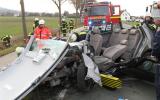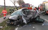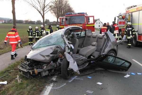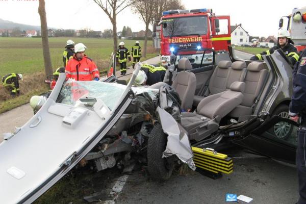 Fahrzeug so stark beschädigt, dass der Fahrer nicht mehr ohne technische Hilfe aus seinem Fahrzeug befreit werden konnte.