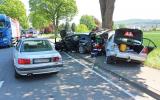 Am 13.05.2016 gegen 13:40 Uhr ereignete sich auf der Lübbecker Strasse am Ortsausgang Dützen Richtung Haddenhausen ein schwerer Verkehrsunfall mit insgesamt 7 beteilligten Fahrzeugen. Dabei wurde eine Person schwer- und sieben Personen leicht verletzt. Die Schwerverletzte Person war im Fahrzeug einge- klemmt und musste von Kräften der Feuerwehr Minden mit technischen Rettungs- gerät aus diesem befreit werden. Alle anderen Personen konnten ihre Fahrzeuge selbstständig verlassen und wurden ins Johannes Wesling Klinikum Minden ge- bracht. Zwei weitere beteilligte Personen wurden vor Ort betreut. Insgesamt waren sieben Fahrzeuge am Unfall beteilligt, davon 1 LKW, der in ein angrenzendes Feld ausgewichen ist und dort zum stehen kam. Nach Abschluss der Rettungsmaß- nahmen unterstützte die Feuerwehr bei der Bergung der Fahrzeuge.
