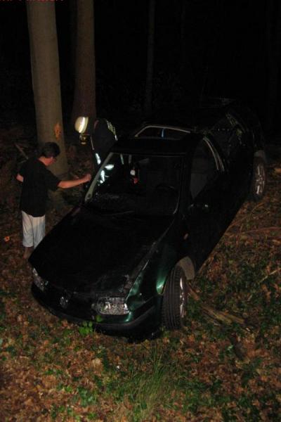 Ein mit vier Personen besetzter PKW kam ausgangs einer Kurve von der Straße ab und schleuderte in den angrenzenden Waldrand.