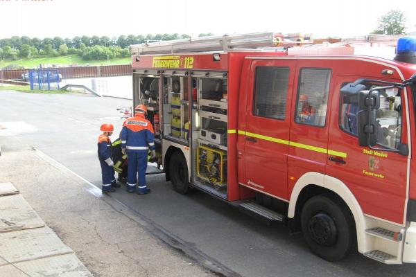 Nachdem das Zelt aufgebaut und jeder seinen Schlafplatz eingerichtet hatte, war das erste Ziel die Feuerwache in Minden. Diese wurde von den Kameraden besichtigt. Großes Interesse fand die Vorführung der Drehleiter. Anschließend ging es zurück zum Gerätehaus in Leteln. Kaum dort angekommen, ging auch schon der erste Notruf ein. Gemeldet wurde eine Rauchentwicklung im Kindergarten in Leteln. Die Kameraden rückten umgehend zum Kindergarten aus. Vor Ort stellten sie nach Erkundung der Lage fest, dass es sich um eine Fehlalarmierung handelte.