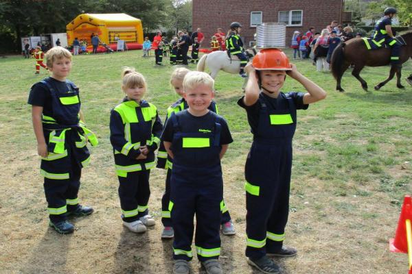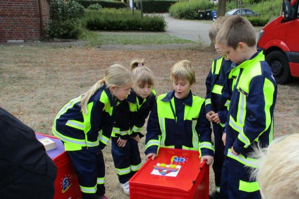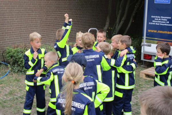 Darüber hinaus gibt es tolle Ausflüge in Freizeitparks, Freizeiten, Kinobesuche und natürlich Wettbewerbe, bei denen sich die Jugendfeuerwehren aus der Region regelmäßig messen und für die auch speziell trainiert und geübt wird. Viele Wettkämpfe haben einen sportlichen, einen theoretischen und einen praktischen Teil. In letzterem wird oft ein Löschangriff simuliert. Außerdem erhalten die Nachwuchskräfte das nötige Grundwissen für spätere Einsätze und eine Einweisung in die „Erste Hilfe“. Die Löschgruppe hat meist auch immer eine enge Beziehung zur Gemeinschaft vor Ort und bindet sich auch in Feste sowie andere Aktionen ein, an denen oft auch die Jugendfeuerwehren beteiligt sind. „Ein rotes Auto zieht hier immer“, weiß Nordmeyer.