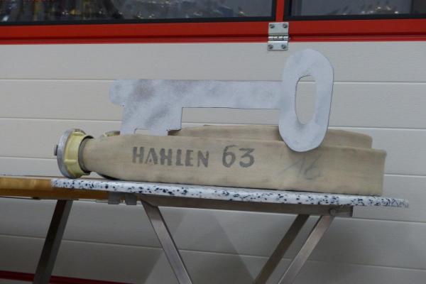 Lutz Kölling überreichte die Fahrzeuge Symbolisch mit einem B-Schlauch des alten Amt Hahlen aus dem Jahr 1963. Diesen besonderen und festlichen Rahmen nahm die Löschgruppe zum Anlass, sich bei ihrem ehemaligen Löschgruppenführer Thomas Rohlfing zu bedanken, der 12 Jahre lang bis zum Januar 2018 die Löschgruppe führte und die vielen Jahre über den Weg zu dem neuen Haus und den neuen Fahrzeugen mit geebnet hat. Auch eine Beförderung konnte noch durchgeführt werden, so wurde Nils Bredemeyer nach bestandenem Gruppenführerlehrgang zum Brandmeister befördert.